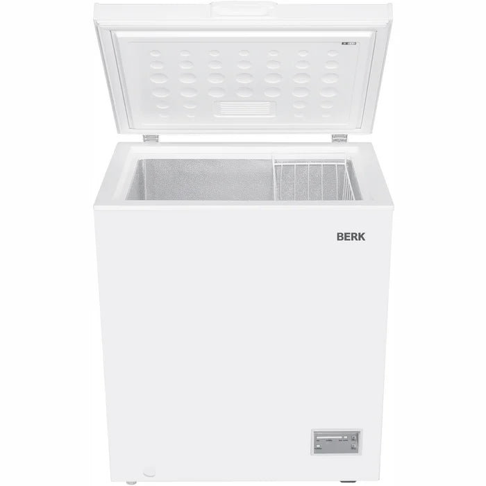 BERK BCF-1421E W ir kompakta horizontālā saldētava ar augšējo ielādi, kas piemērota mājsaimniecībām, vasarnīcām vai kā papildu saldētava ilgākai produktu uzglabāšanai. Modelis piedāvā elektronisko vadību, ātrās sasaldēšanas funkciju un praktisku 142 litru ietilpību ikdienas vajadzībām.