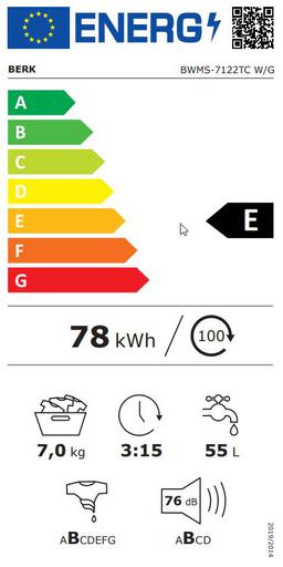 Berk BWMS-7122TC W/G – veļas mašīna ar priekšējo ielādi, 7 kg