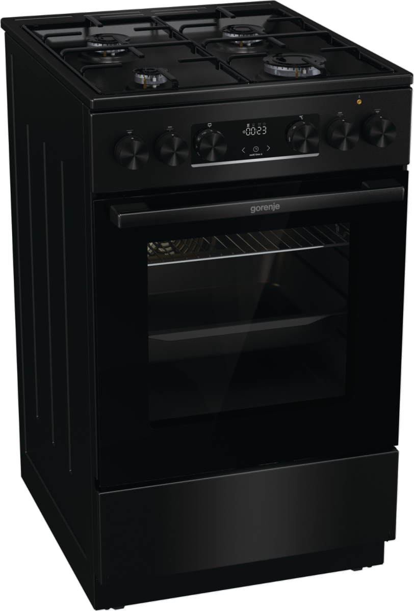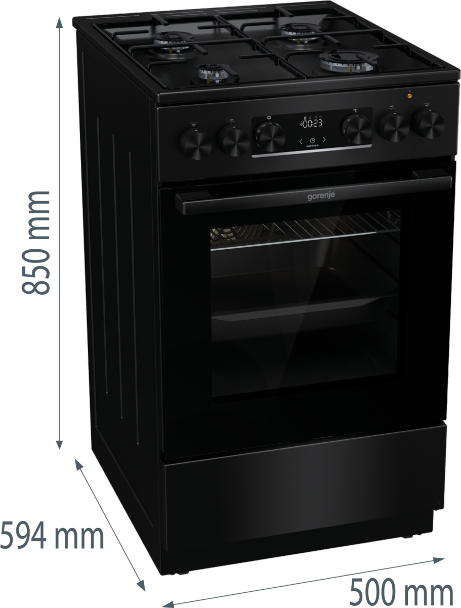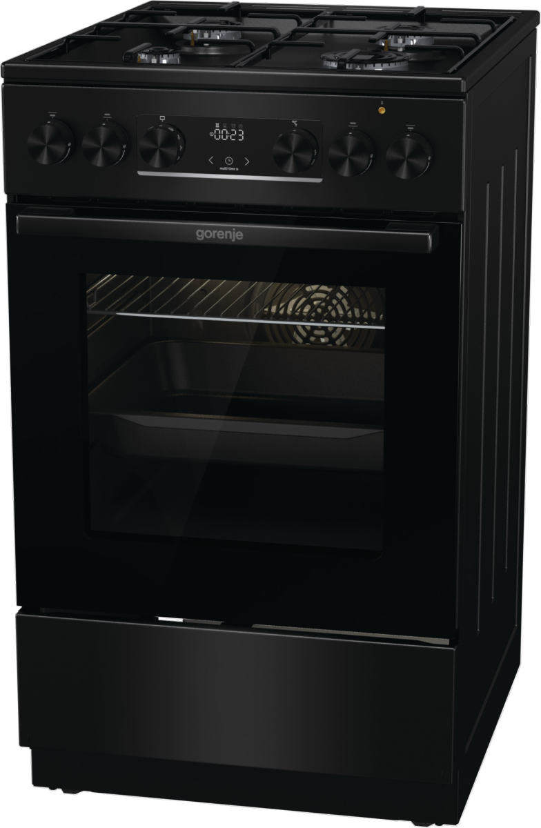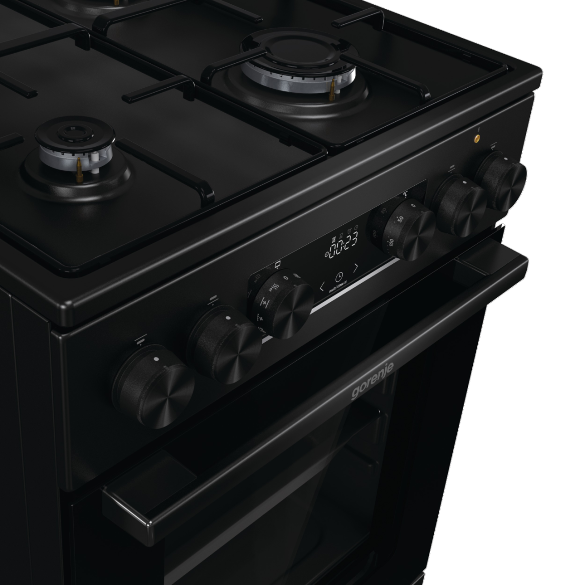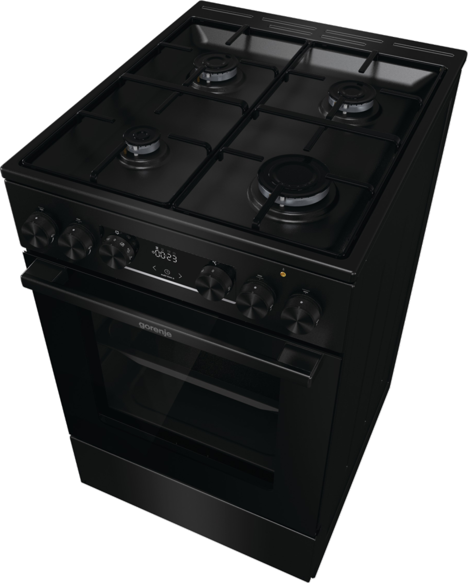 Gorenje GK5C60BJ – melna kombinētā plīts ar gāzes virsmu, 50 cm