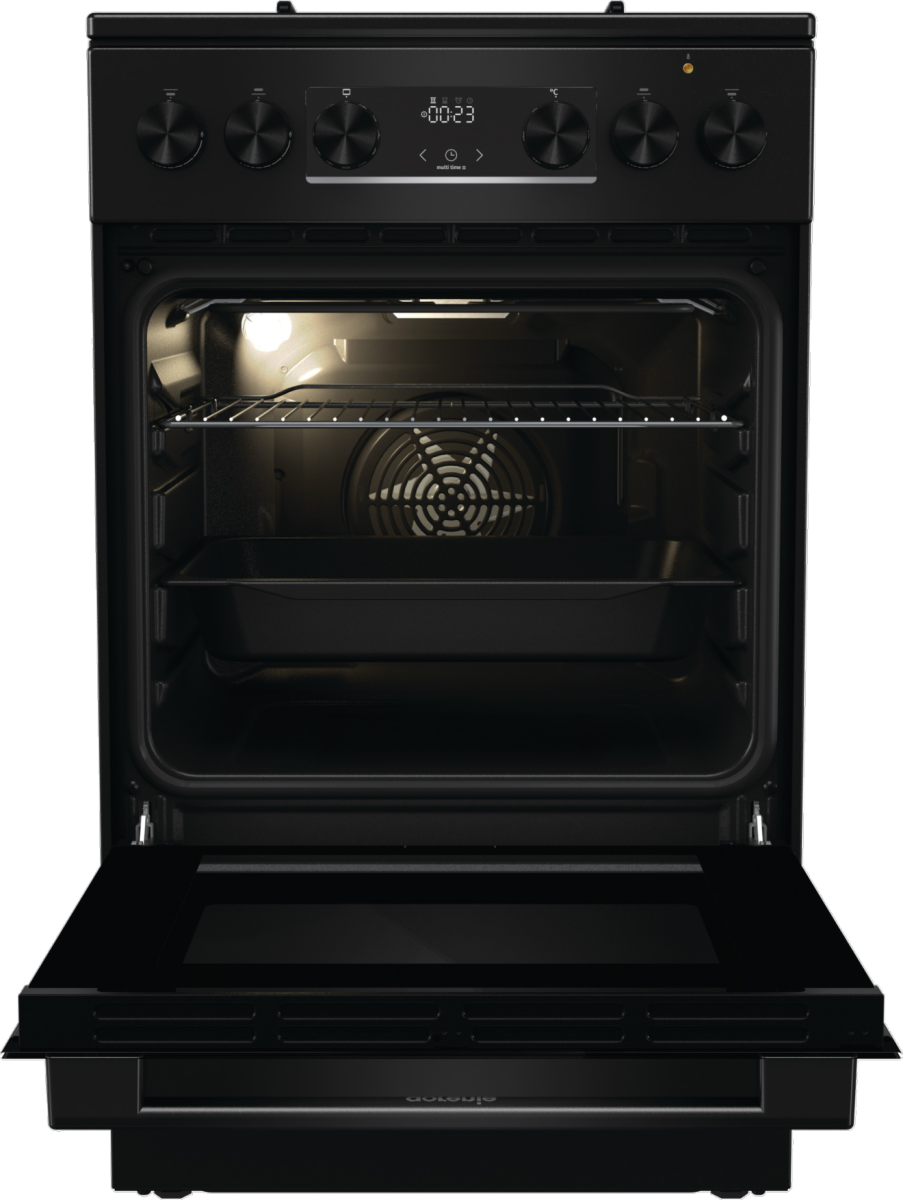 Gorenje GK5C60BJ ir kompakta melna (Melns) 50 cm kombinētā plīts, kas apvieno gāzes plīts virsmu ar elektrisko cepeškrāsni. Modelis paredzēts ikdienas lietošanai un piedāvā vienmērīgu cepšanu ar MultiAir tehnoloģiju, kā arī praktiskas funkcijas – Pizza režīmu, AquaClean tīrīšanu un atsaldēšanas funkciju. Elegantais melnais dizains ar lakota metāla priekšpusi un ergonomiskām pogām lieliski iederas modernā virtuvē.