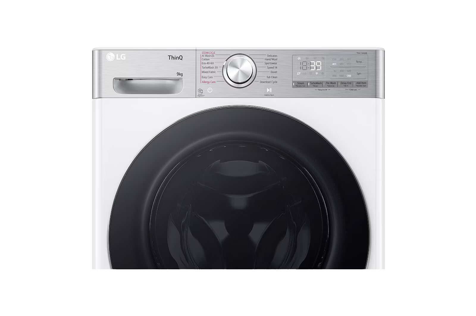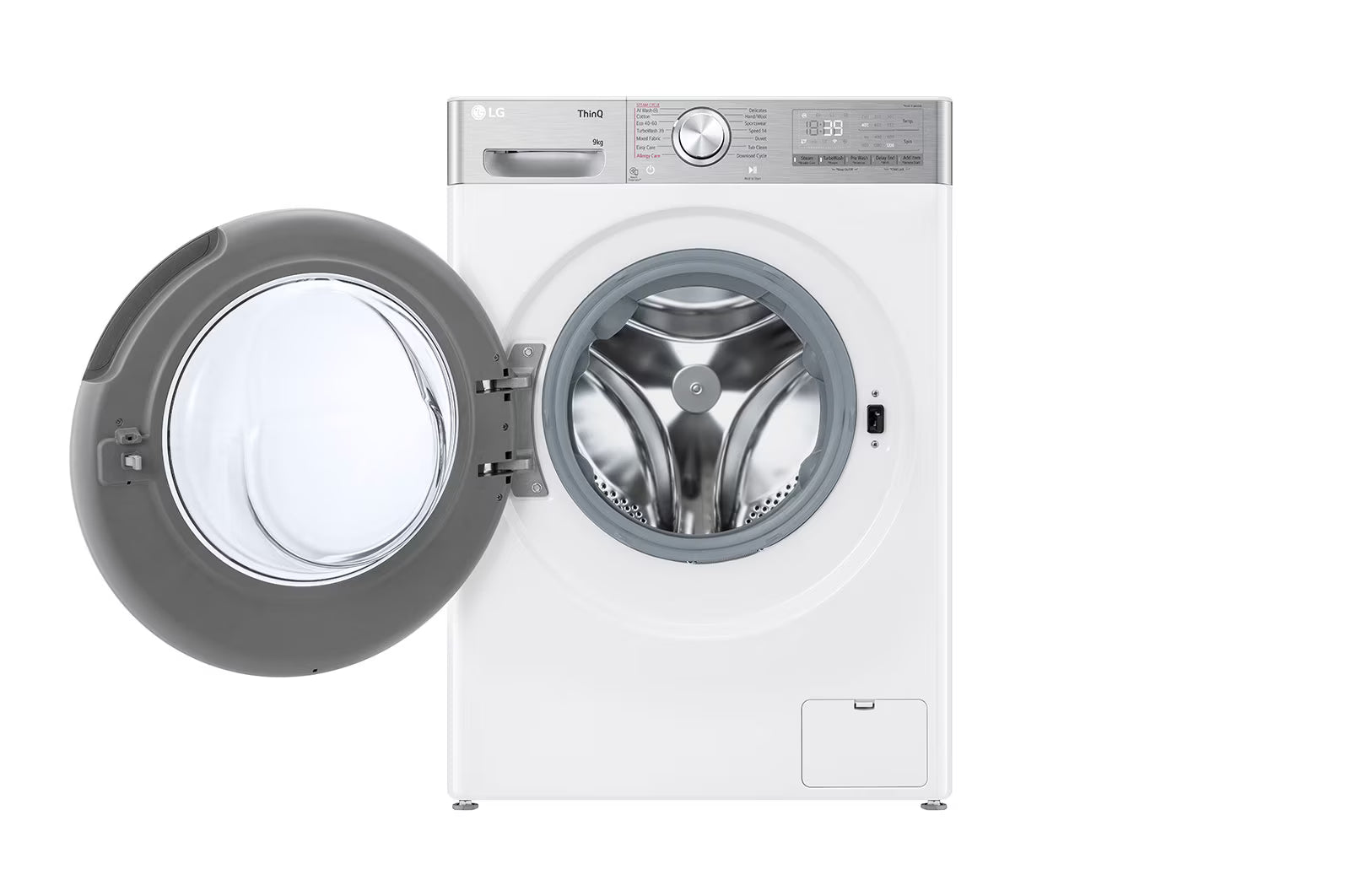 LG F2WR909P3W ir brīvi stāvoša veļas mazgājamā mašīna ar 9 kg ietilpību, 1200 apgr./min centrifūgu un tvaika funkciju. Modelis ir piemērots ikdienas lietošanai ģimenē, piedāvājot AI DD, TurboWash 360, Wi-Fi vadību ar LG ThinQ un kompaktu 47,5 cm dziļumu.