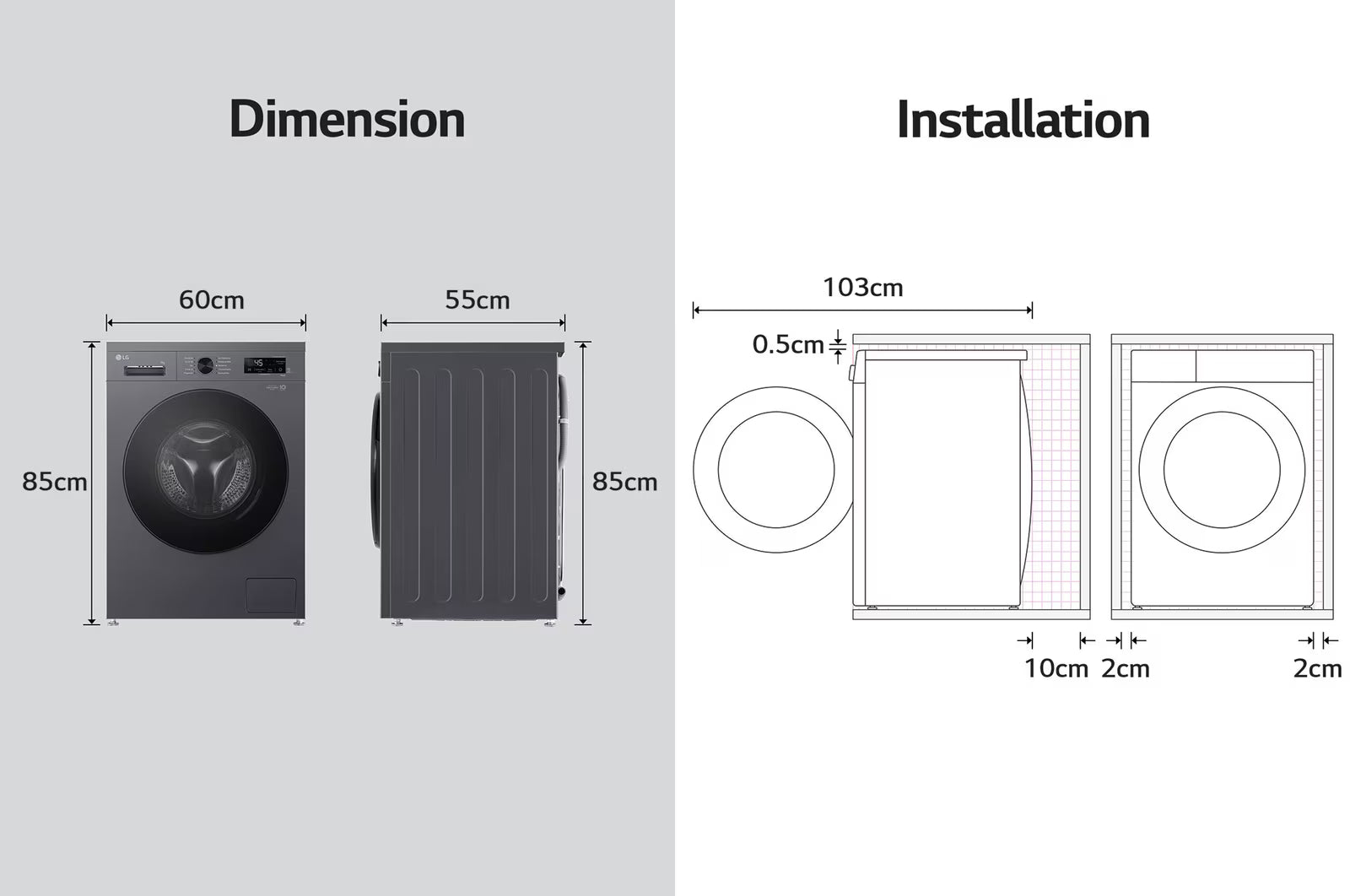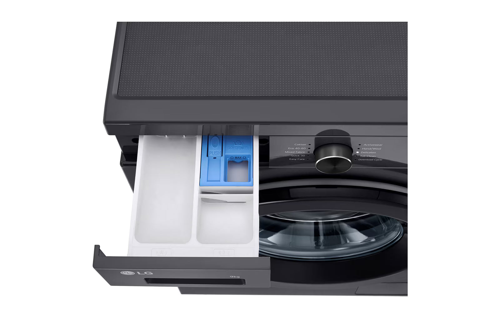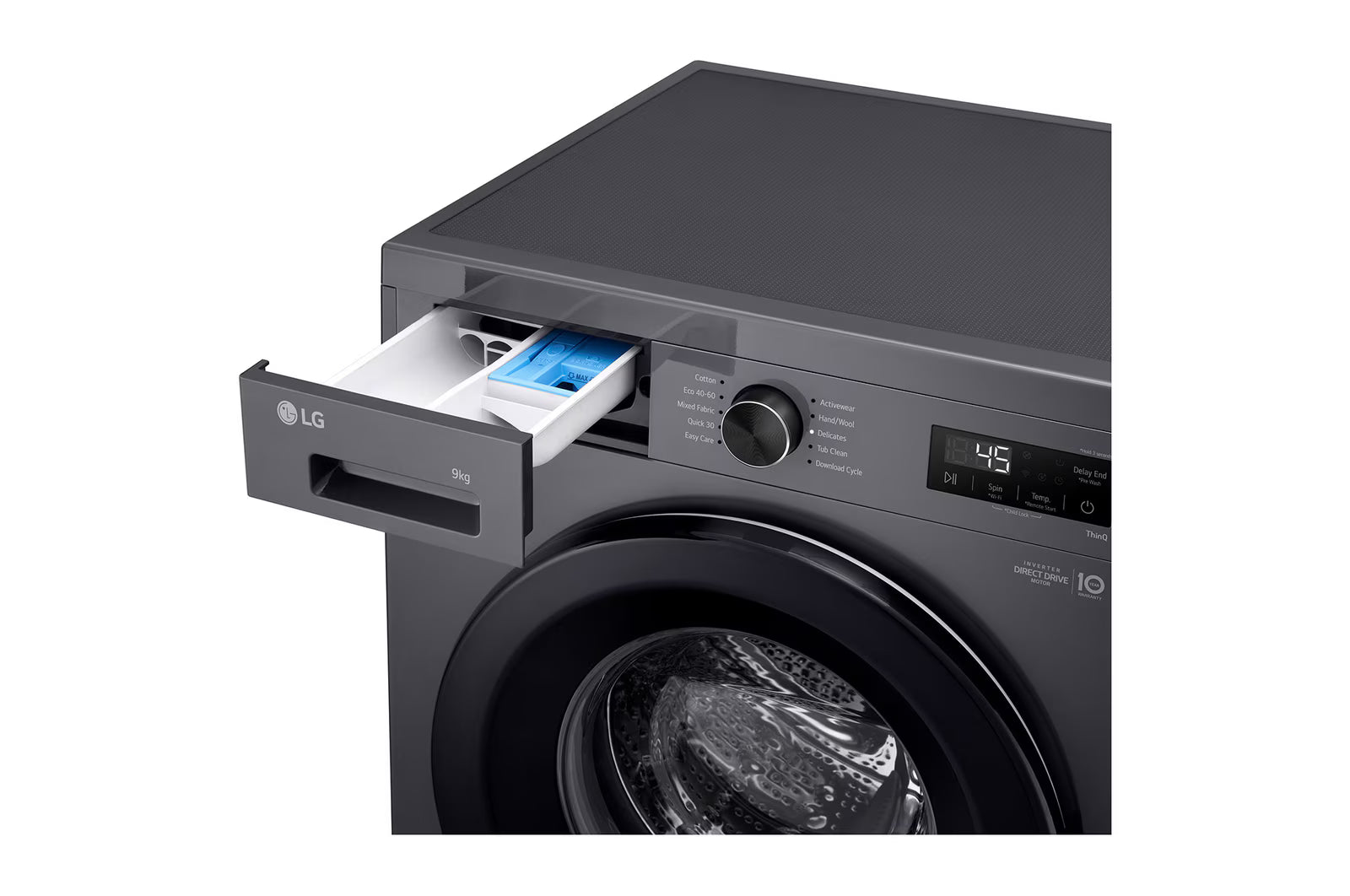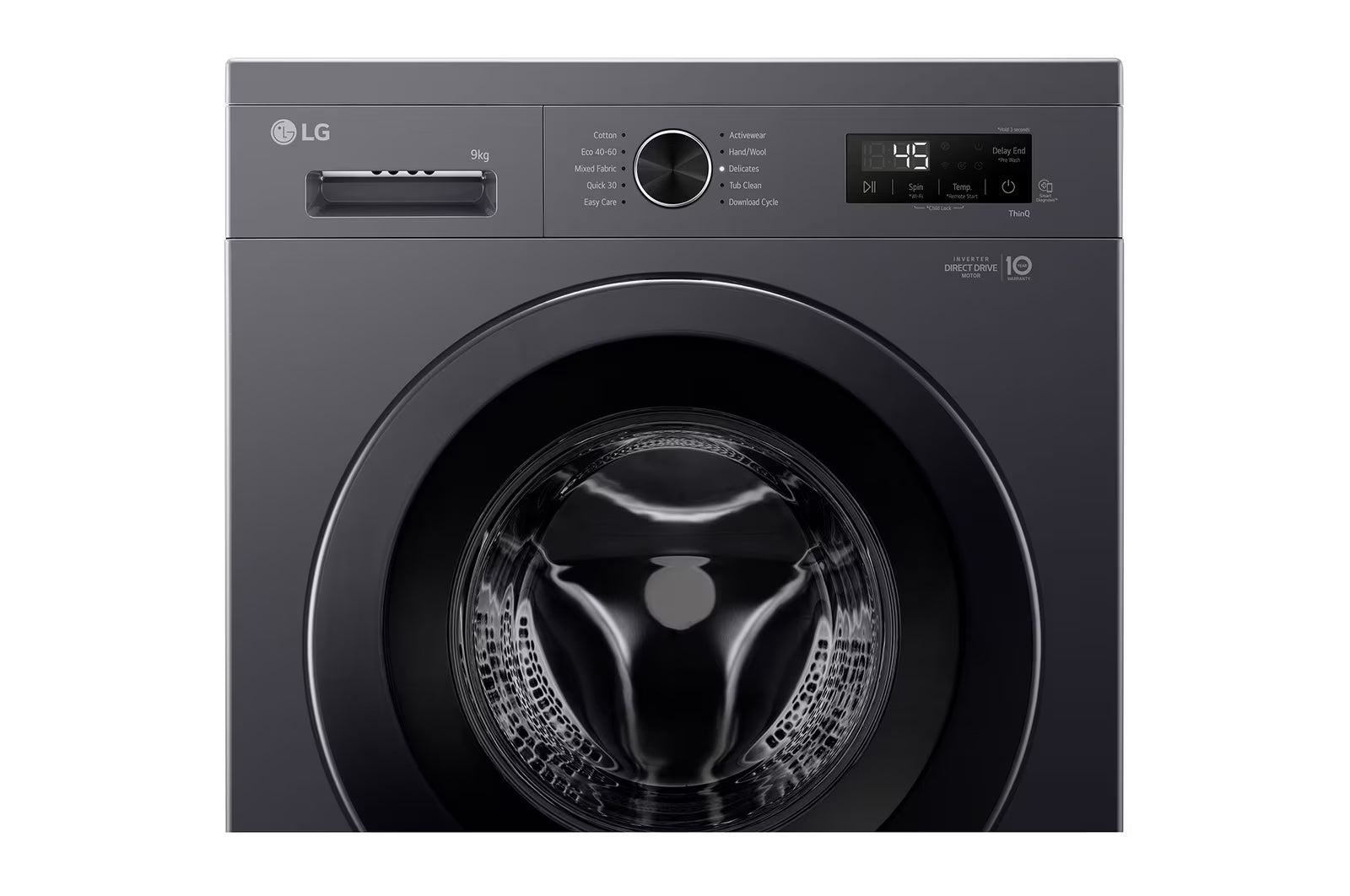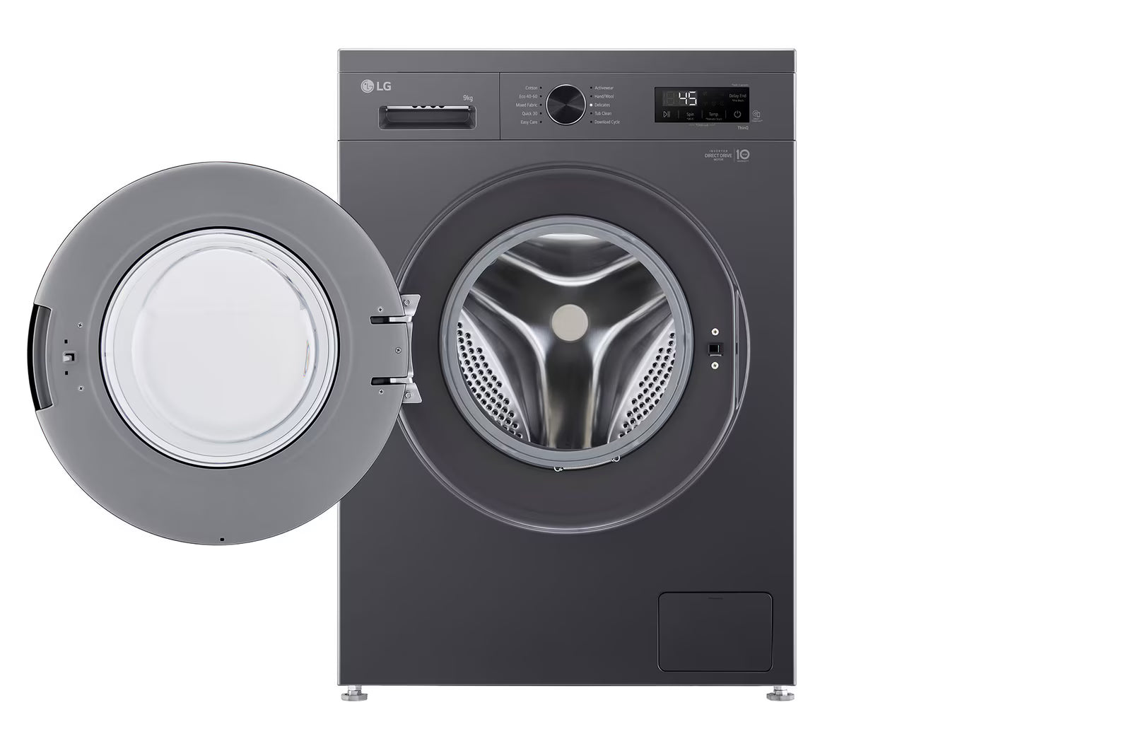 LG F4X1009NMB ir brīvi stāvoša veļas mazgājamā mašīna ar 9 kg ietilpību, 1400 apgr./min centrifūgu un tvaika funkciju. Modelis ir piemērots ikdienas lietošanai ģimenē, piedāvājot Inverter Direct Drive motoru, ThinQ Wi-Fi vadību un kompaktāku 55 cm dziļumu.
