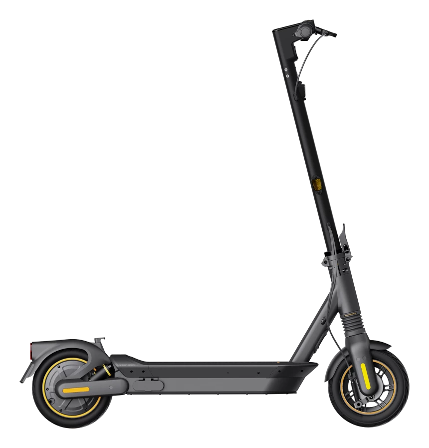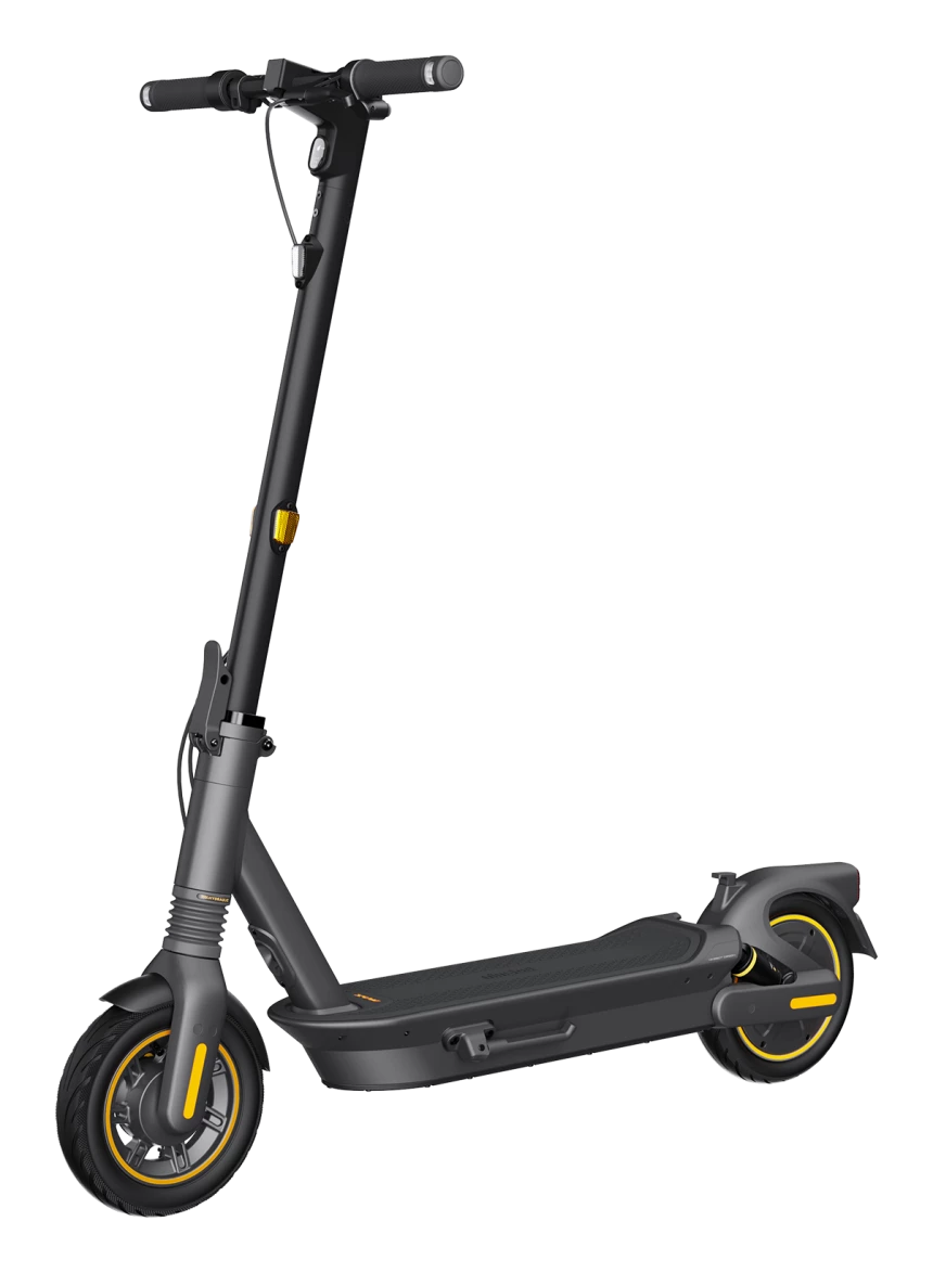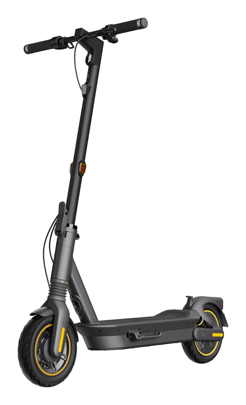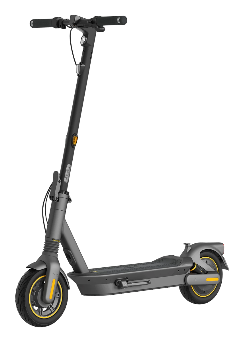 Ninebot by Segway KickScooter MAX G2 ir elektriskais skrejritenis ikdienas braucieniem pilsētā un garākiem maršrutiem, kas apvieno lielu nobraukumu, komfortablu divkāršo piekari un drošas braukšanas tehnoloģijas. Modelis piedāvā RideyLONG™ darbības optimizāciju, priekšējo hidraulisko un aizmugurējo atsperu piekari, 10 collu pašblīvējošas bezkameru riepas un Traction Control System stabilākai braukšanai. Tas ir piemērots lietotājiem, kuri vēlas uzticamu, ērtu un tehnoloģiski modernu skrejriteni ikdienas lietošanai.