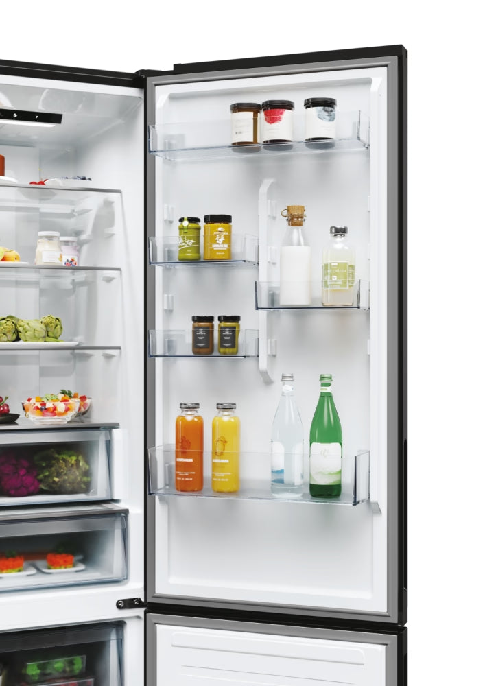 Candy Fresco 300 CNCQ2T620EB ir ietilpīgs, kluss un tehnoloģiski attīstīts ledusskapis, kas apvieno 409 l kopējo tilpumu, No Frost dzesēšanu, viedās funkcijas un mūsdienīgu melnu dizainu. Ideāla izvēle mājsaimniecībām, kur svarīgs ir svaigums, energoefektivitāte un uzticama ikdienas darbība.