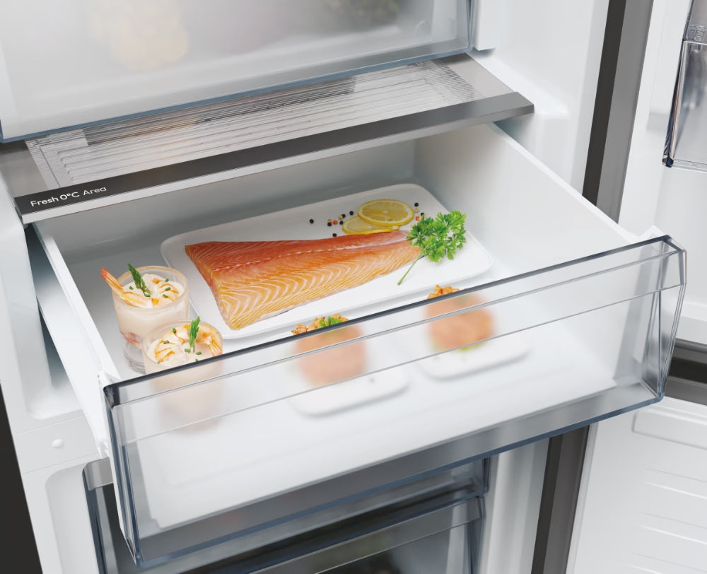 Candy Fresco 300 CNCQ2T620EB ir moderns, ietilpīgs un funkcionāls brīvi stāvošs ledusskapis ar saldētavu apakšā, kas paredzēts ģimenēm un lietotājiem ar augstām prasībām pret svaiguma saglabāšanu. 2 metru augstums, No Frost tehnoloģija, Smart Inverter kompresors un viedā hOn lietotne nodrošina komfortablu ikdienas lietošanu un stabilu dzesēšanas kvalitāti.