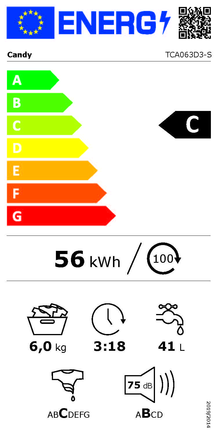 - Enerģijas patēriņš (100 cikli, Eco 40–60): 56 kWh