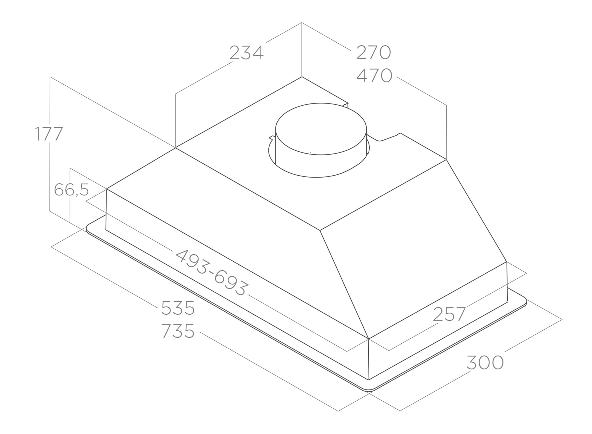 - Minimālais attālums virs gāzes plīts: 65 cm