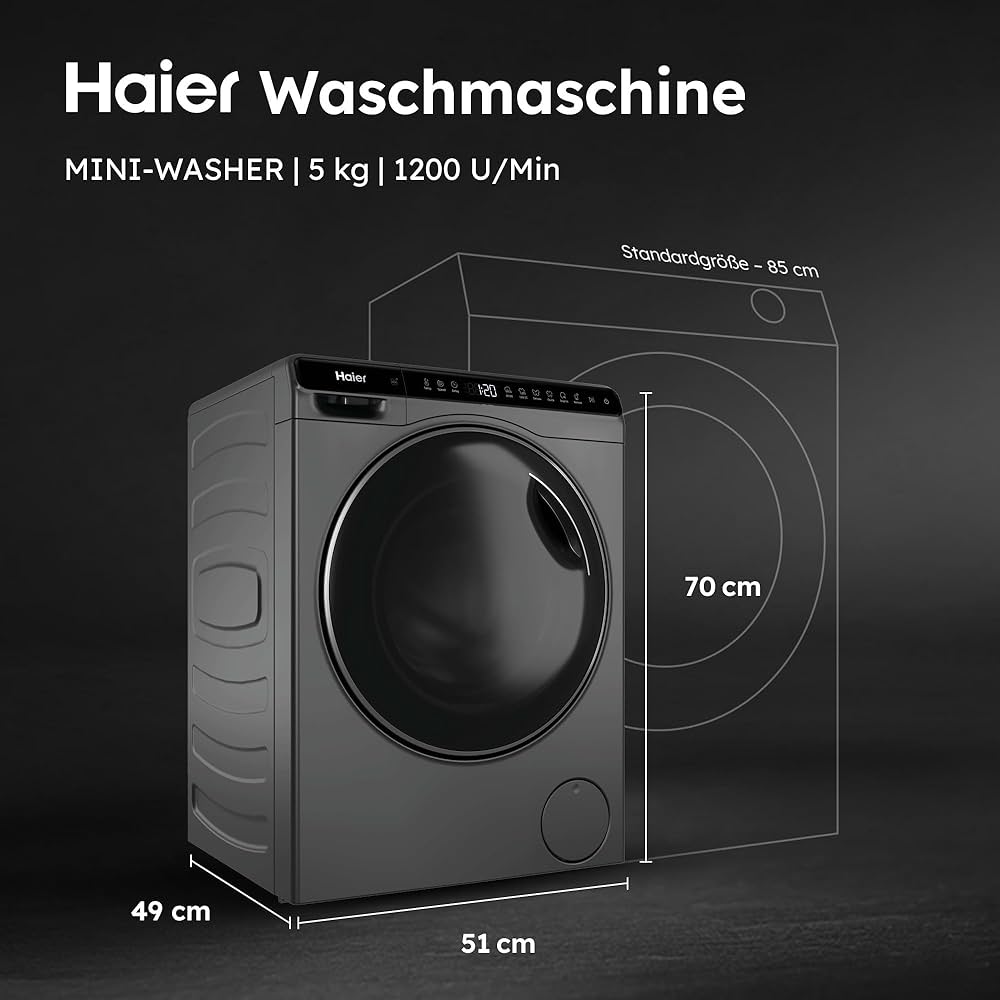 Haier HW50-BP12307-S Mini Drum – 5 kg, 1200 apgr./min, A klase