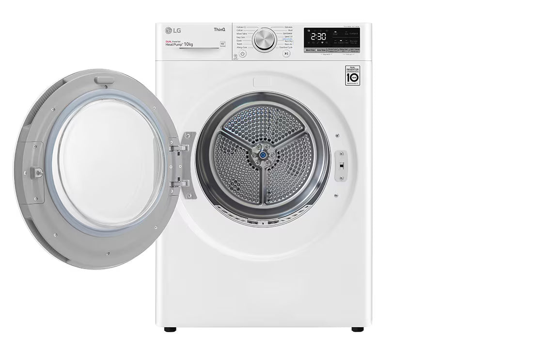 LG RH10V9AV4W veļas žāvētājs ar siltumsūkni (10 kg) LG RH10V9AV4W ir priekšējās ielādes veļas žāvētājs ar siltumsūkņa tehnoloģiju, kas nodrošina... Lasīt vairāk
